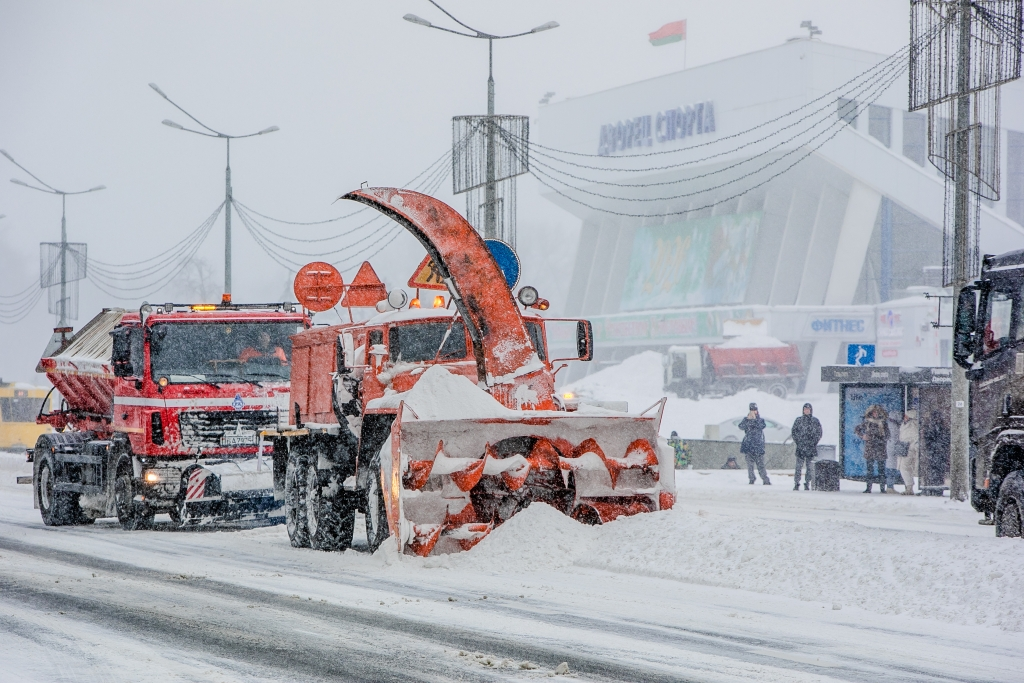 Отметим, что с непогодой столкнулись практически в каждом регионе Беларуси. С утра на улицах страны работает 1764 единицы специальной коммунальной техники, в том числе песко- и солеразбрасыватели, снегоуборочные машины, транспорт для погрузки и вывоза снега и другая техника. Более 6,4 тыс. работников ЖКХ очищают от снега и посыпают песчано-соляными смесями улицы, тротуары, дворовые территории. На помощь коммунальщикам пришли 980 сторонних организаций и 450 единиц техники.