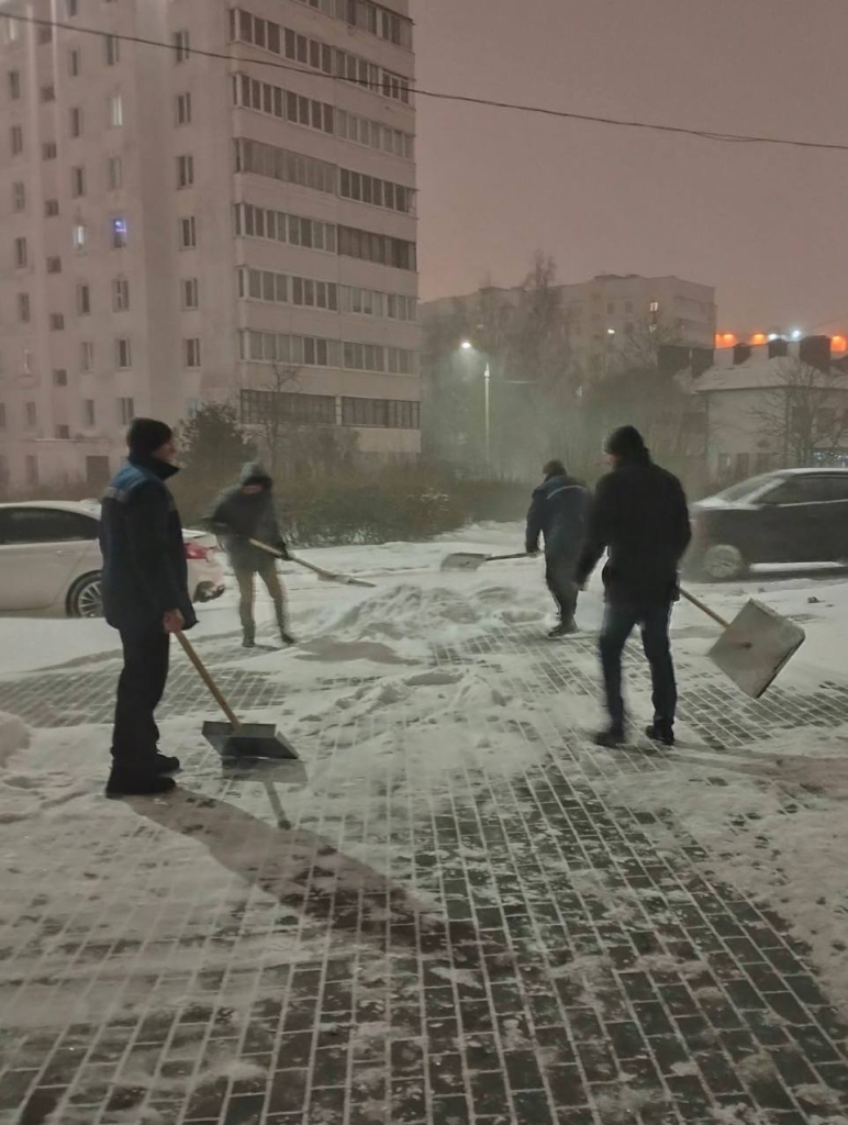 Бригады по борьбе с последствиями снегопада работают по сменному графику. Всем работникам выдана спецодежда и обувь, необходимые инструменты для работы. При этом организованы перерывы для обогрева и питания.